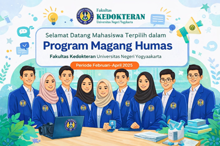 Fakultas Kedokteran Universitas Negeri Yogyakarta (FK UNY) menyambut kehadiran mahasiswa terpilih yang akan mengikuti program magang di bidang kehumasan pada periode Februari–April 2025. Program ini menjadi bagian dari upaya penguatan fungsi komunikasi dan publikasi di lingkungan FK UNY. Sebelumnya, proses rekrutmen peserta magang disampaikan melalui grup WhatsApp mahasiswa, yang kemudian diikuti dengan tahapan seleksi untuk menjaring mahasiswa yang memiliki minat dan kompetensi di bidang komunikasi dan publikasi.